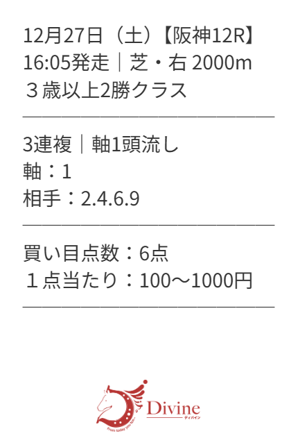 Krs3301さん良い年末を迎えられそうな無料予想的中を届けてくれたディバイン