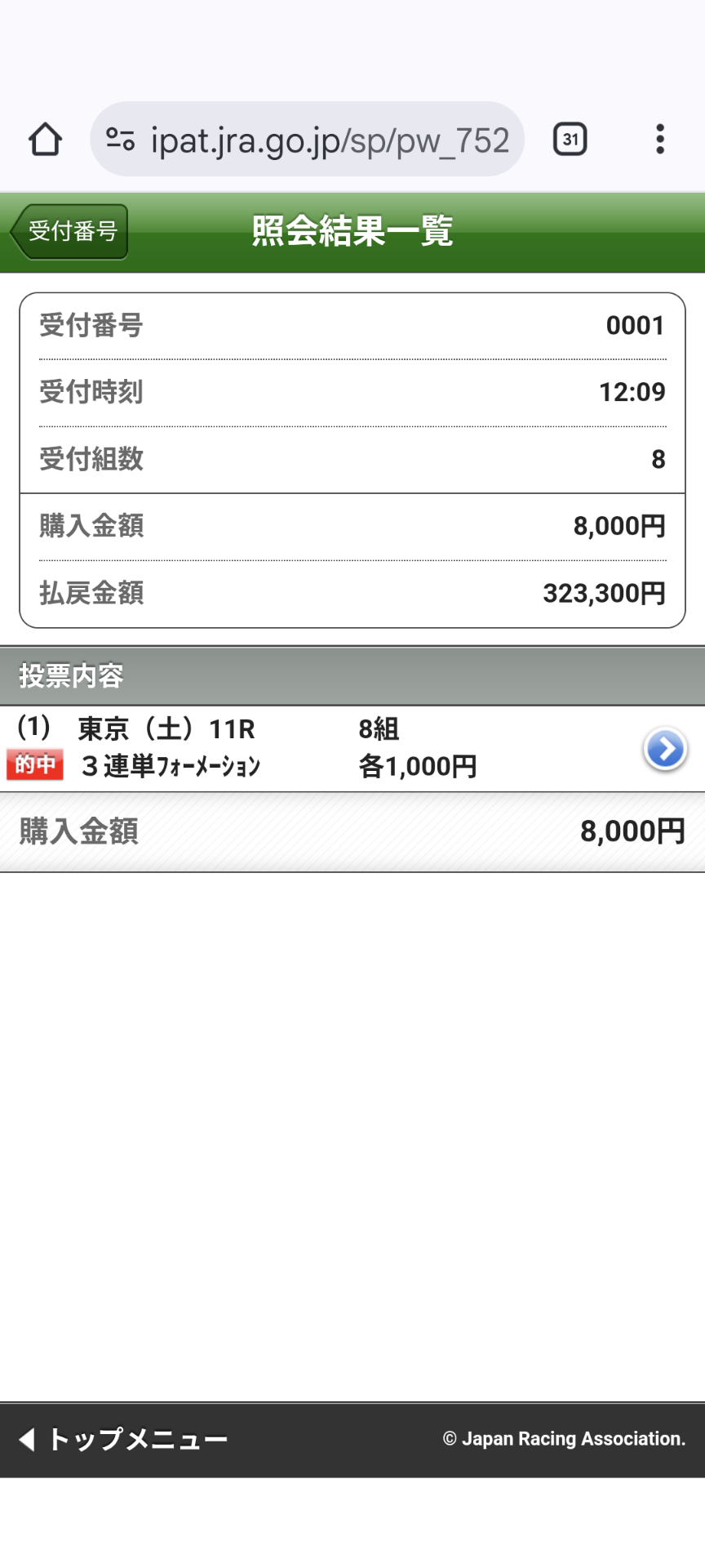 ただ、一つミスったのが的中馬券画像を撮り損ねた事!