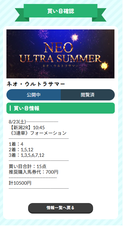 8月23日(土)の新潟2Rで「ネオウルトラサマー」が