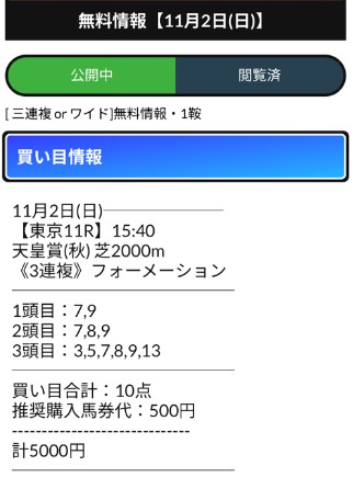 G1天皇賞(秋)でも無料予想的中に期待します!