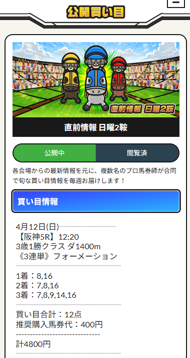 | 的中率 | 回収率 | 無料予想 | 有料予想 | 高配当 |