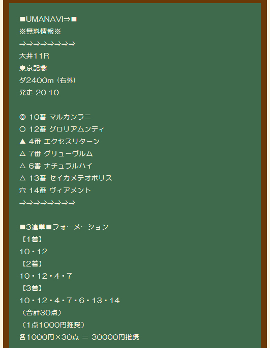 ここは中央競馬無料予想で4度の帯封的中実績ありなので