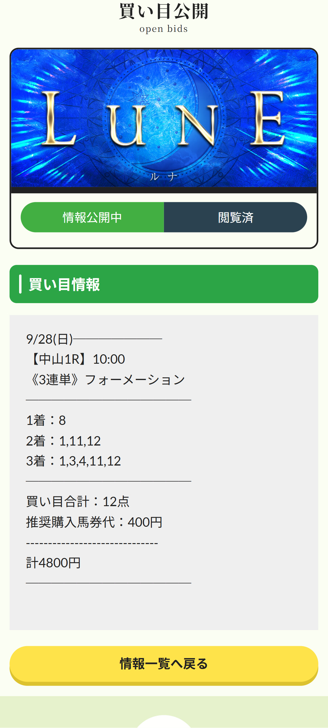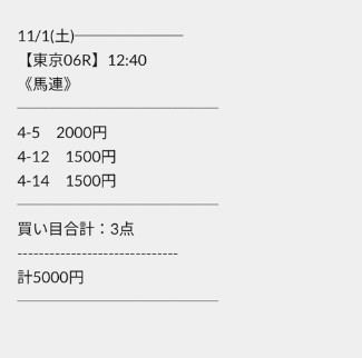 そういった意味で言えば9月28日(日)のあさイチ中山1RでLUNEの予想が的中して14万1720円を手に入れたこの日