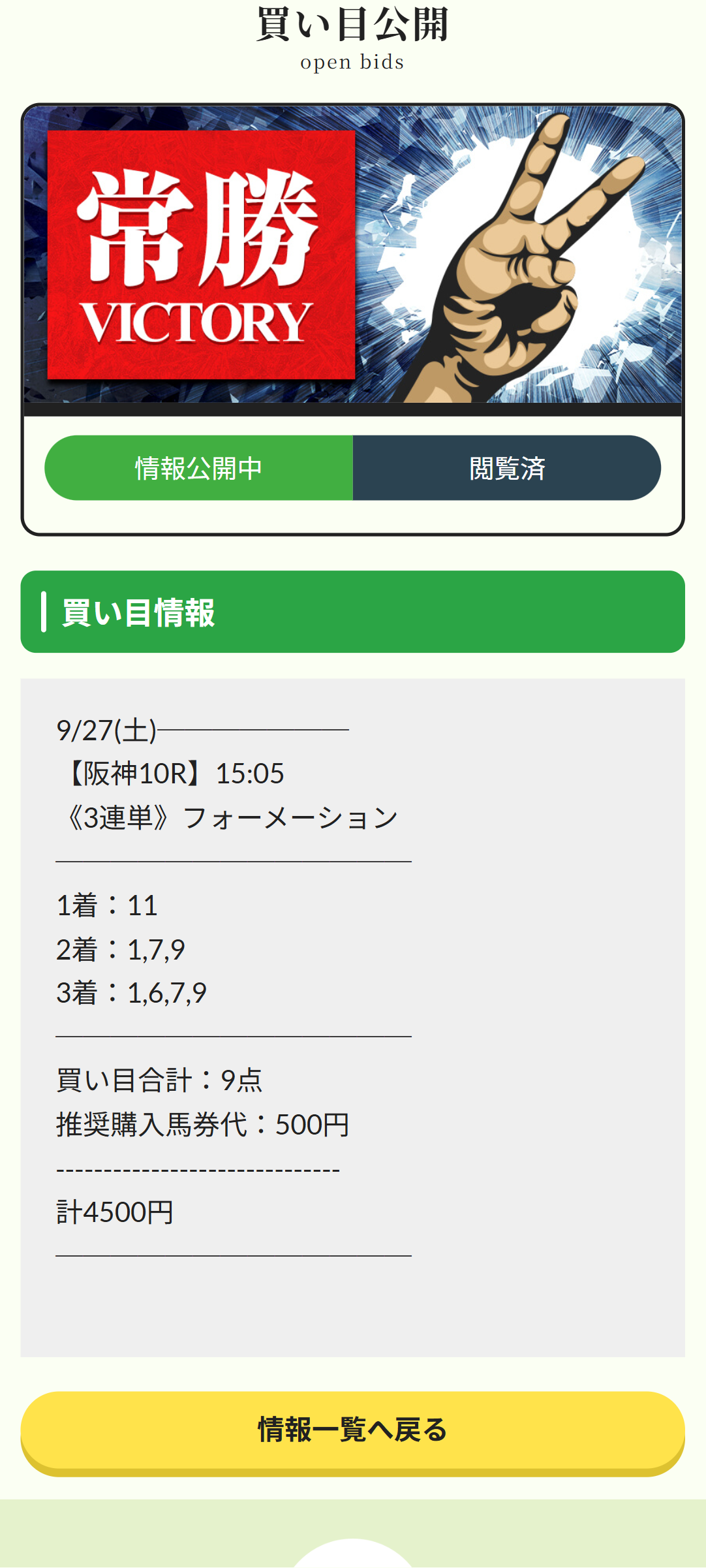 9月27日(土)の常勝ビクトリーに参加をして阪神10Rで