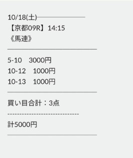 18日(土)の京都9R無料予想で買い目点数3点で的中