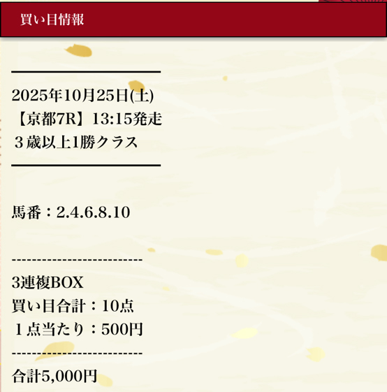 その中で6日(土)の暁の無料予想は馬券代5000円で