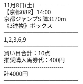 買い目点数はかなり少なかった!配当額は1点1000円で買って