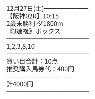 馬券代も総額4000円で出しやすい!それで三連複的中でしっかり利益が出る。