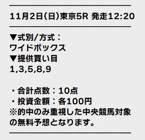 東京5Rでワイド3つ全部的中で1万6600円獲得