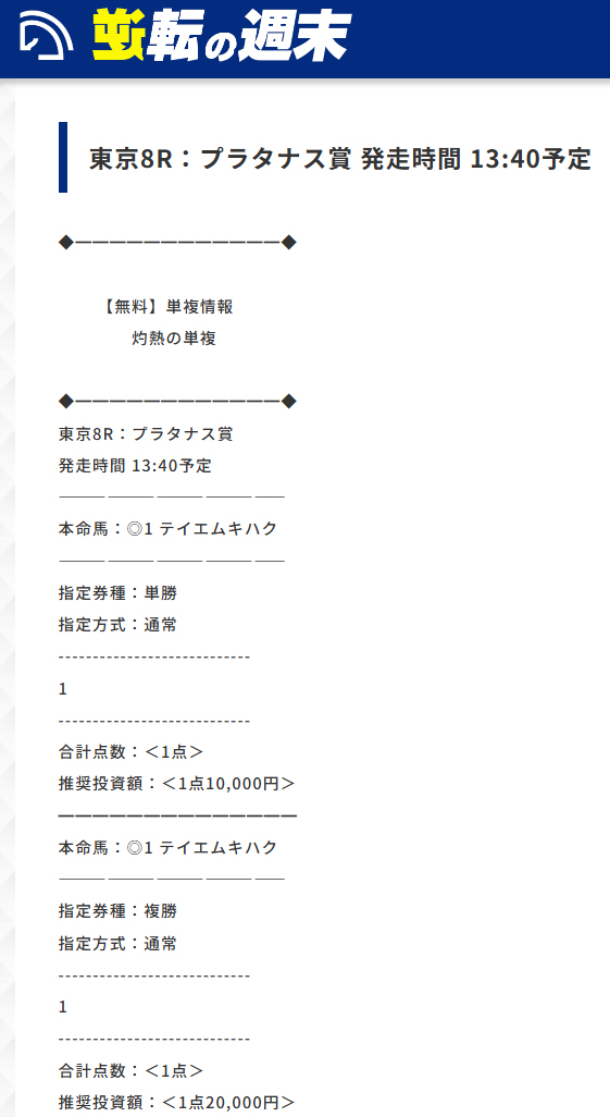 無料予想の“高配当製造機”と言えば逆転の週末