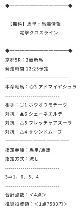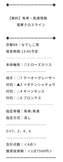 18日(土)の京都8Rは無料予想で馬連・馬単の2馬券種的中