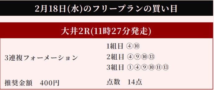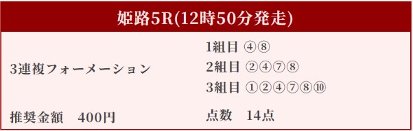 2月4日(水)無料予想で姫路5Rの三連複的中