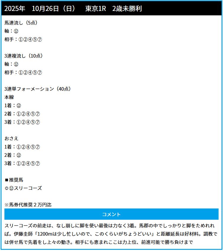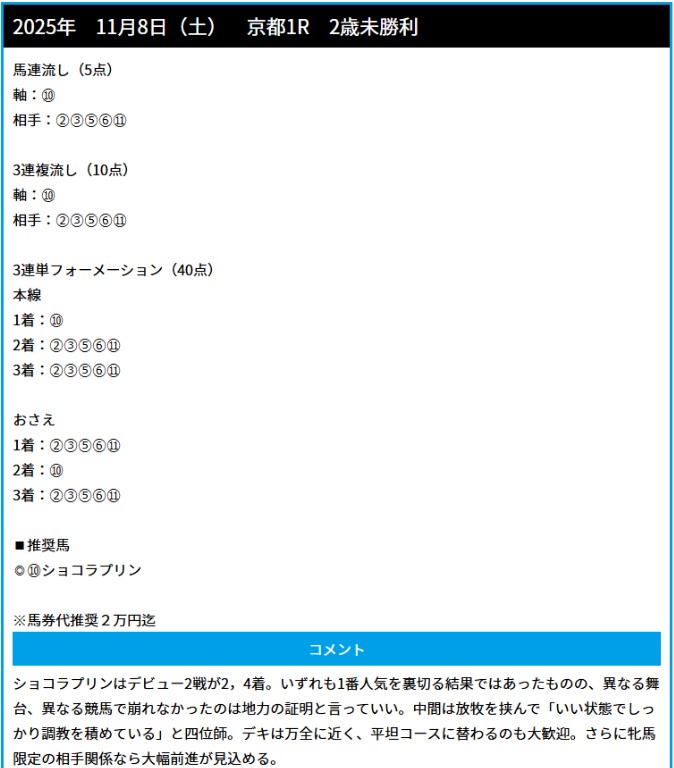 10月5日(日)のあさイチ無料予想では京都1Rで馬連・三連複・三連単の